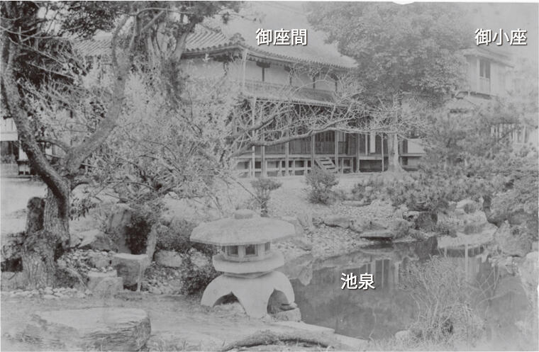 佐賀城本丸の庭園と御座間・御小座古写真(佐賀市立赤松小学校蔵・本館寄託)