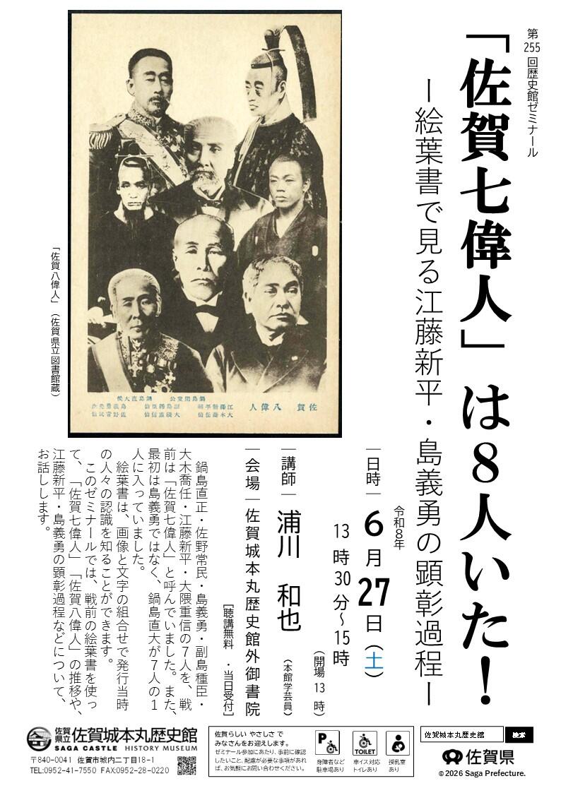 第255回歴史館ゼミナール 「佐賀七偉人」は8人いた! ―絵葉書で見る江藤新平・島義勇の顕彰過程―